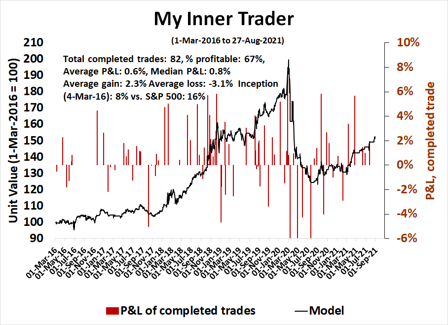 Update schedule: I generally update model readings on my site on weekends and tweet mid-week observations at @humblestudent. Subscribers receive real-time alerts of trading model changes, and a hypothetical trading record of those email alerts is shown here.