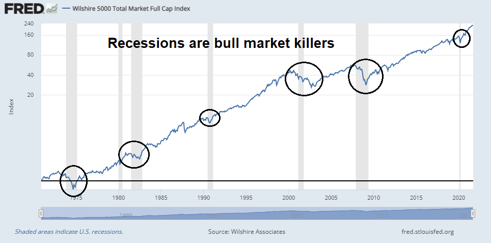 Putting it all together, how worried should investors be? Here is the big picture. Recessions are bull market killers and there is no sign of a recession in sight. Long-term investors should not panic.