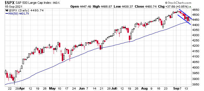 Mid-week market update: As the S&P 500 revisits the area around its 50 dma, will the weakness persist or will it be halted? The index has found good support at the 50 dma all of this year. Equally constructive is the bull flag pattern being traced out by the S&P 500, though the index hasn’t staged an upside breakout through the flag yet.