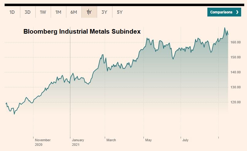The prices of the Bloomberg Industrial Metal Index may be driven by the desire to curb CO2 emissions (aluminium) and/or by expectations of increased battery demand. I’m curious about the Chinese Financials vs China ratio, how is that made up? If the multiples of the entire Chinese market have been brought down due to the tech sector crackdowns (and the expectation that the government will step in once a company grows too big too fast) – wouldn’t that automatically result in a low multiple sector like financials holding up better relative to the market?