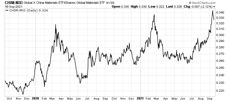 Equally surprising is the relative strength of Chinese material stocks relative to global materials.