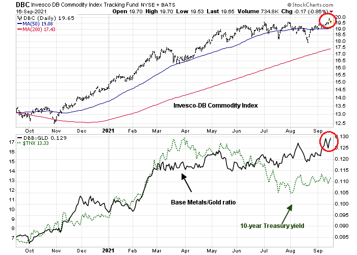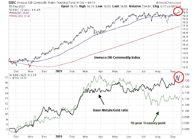 Another indirect way of measuring the strength of the Chinese economy is through commodity prices as China is a voracious consumer of commodities. Commodity prices reached a fresh all-time high yesterday and the cyclically sensitive base metals/gold ratio has been strengthening.