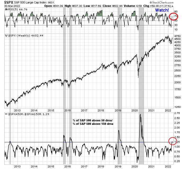 Mid-week market update: Before the war began, I wrote that investors should Buy to the sound of cannons. Historically, investors have been rewarded by buying sudden geopolitically related downdrafts. The corollary is “sell to the sound of trumpets”, or news of peace.