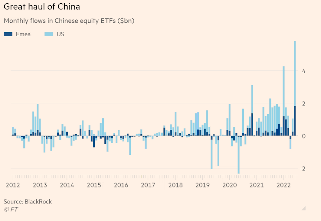 FT reported that “Western investors pumped a record amount into Chinese equity ETFs in June”. The foreign stampede into Chinese equities has the potential to be a disaster in the making.