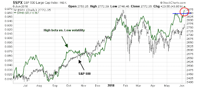 The latest update of the evolution of Q2 2018 EPS estimates from FactSet shows that earnings estimates are still rising even after the tax cut ramp. In the past, EPS estimates has shown a pattern of excess optimism and getting revised downwards as reporting date approaches.